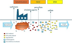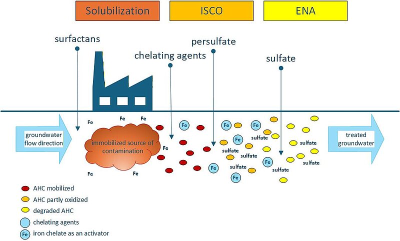 Contamination from aromatic hydrocarbons (AHC) poses a threat to our global drinking water resource—groundwater. At the same time, particularly in the case of heavily contaminated brownfield sites, remediation times of several decades are to be expected before the product phases are completely degraded, unless methods are employed to accelerate their removal.