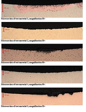 Im Kurzzeitentzinkungstest wurde für keines der getesteten Materialien eine relevante Entzinkung festgestellt. Bei den Langzeitentzinkungsprüfungen zeigten drei der vier bleifreien Messingwerkstoffe ein mindestens gleiches oder besseres Verhalten als der Referenzrotguss. Ein bleifreies Material zeigte eine Entzinkungstiefe von etwa 200 µm, was für einige Anwendungen als signifikant angesehen werden kann. Grundsätzlich sind alle vier geprüften bleifreien Messinge für den Einsatz in Trinkwasser geeignet. In lokalen Gewässern mit einem erheblichen Entzinkungspotential (Gewässer mit niedriger Alkalität, hohen Chlorid- und / oder Sulfatkonzentrationen) wird jedoch empfohlen, Langzeittests durchzuführen, um die Leistung der bereitgestellten Materialien zu bestätigen.